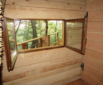 L’accès à la cabane se fait très facilement et en toute sécurité par un escalier droit.